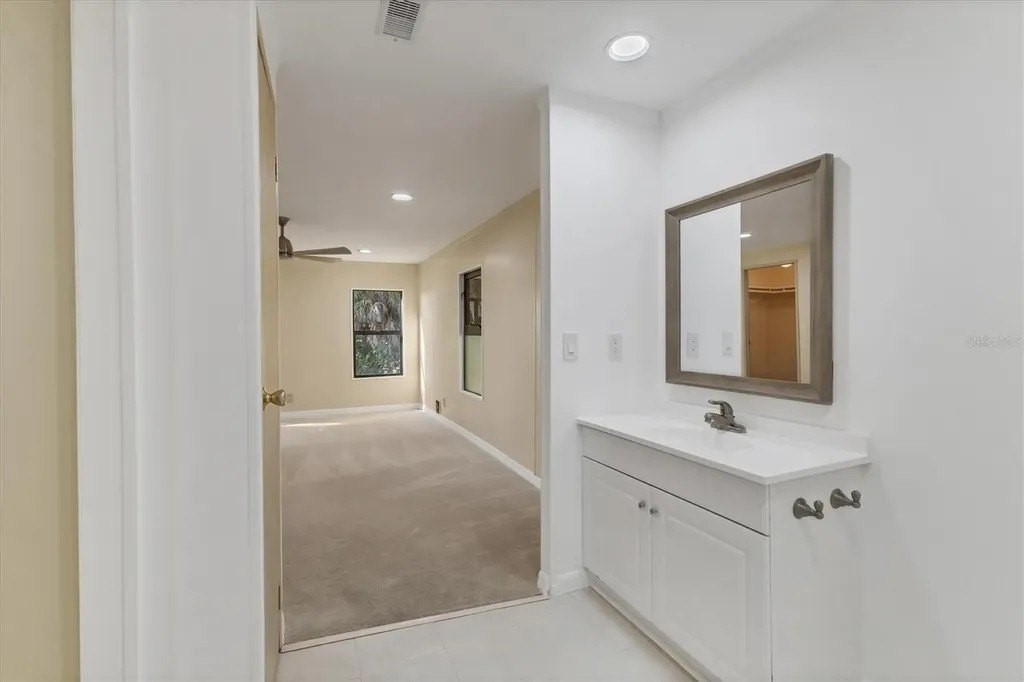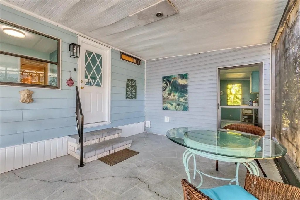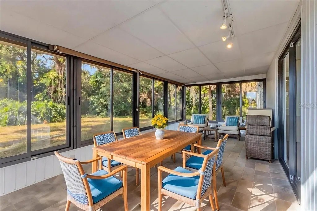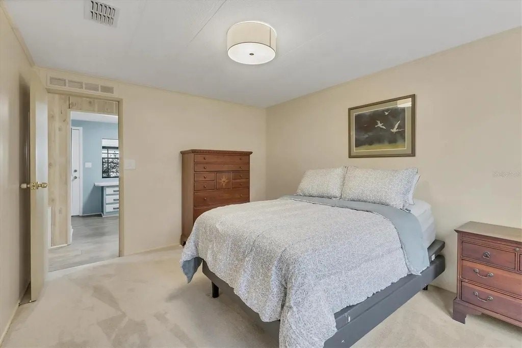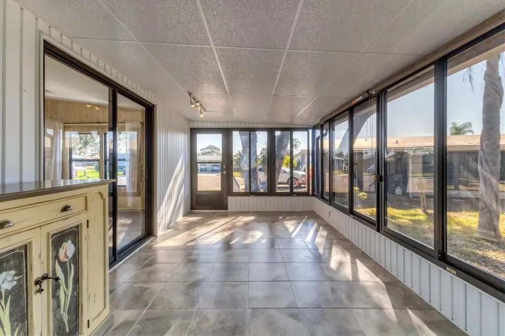 A uniquely private location on a cul-de-sac, with a private backyard, boasting a greenbelt area, not to be built on, that is lush and green! This highly sought-after gated community of Tangerine Woods, is an active and friendly, 55 and over community, where you own both your lot and home. For your leisurely pleasure, this community provides you with a large heated pool and clubhouse, an exercise room and library, tennis and pickleball courts, walking trails, shuffleboard, and so much more! This light and bright, partially furnished home, leaves room for you to select the upgrades that are important to you. A neat and clean home with a brand new roof in 2026, A/C replaced in 2023, and a spacious, chef's delight kitchen, which includes a large breakfast bar, and plenty of counter and cupboard space, is sure to appeal to most as either a permanent home or a seasonal winter getaway from the cold. The master bedroom has 2 large closets and an oversized en suite bathroom. Additionally, there is a bonus room that serves as a versatile flex space for either a home office, hobby room, library or storage. Of the 2 screened and shaded lanais, one offers large sliding windows, with roll down shades, tiled flooring, and a window unit air conditioner for your indoor/outdoor pleasure! The 2nd screened lanai is just perfect for backyard entertaining and those much enjoyed grilled dinners off your private yard. The low monthly HOA payment of $226 includes cable TV, internet and grass cutting, and Tangerine Woods is pet friendly! This community is close to Historic Dearborn St., which provides casual dining, evening entertainment, locally owned shops and a Farmers Market on Thursdays. The local beaches are just 4 miles away, as well as many local golf courses, and world class fishing! Make your appointment today to see this wonderfully located home, as it won't last long!